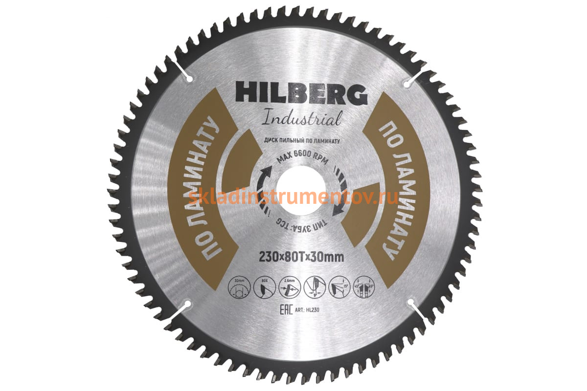Диск пильный Hilberg Industrial Ламинат (230x30 мм; 80Т) HL230