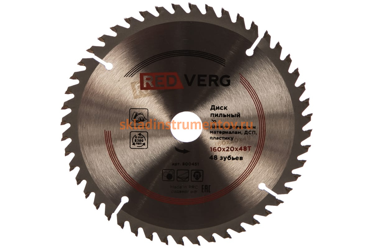 —Диск пильный твердосплавный по ламинату (160х20/16 мм; 48 зубьев) REDVERG 6621250—