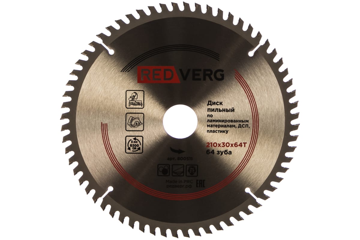 —Диск пильный твердосплавный по ламинату (210х30/20/16 мм; 64 зуба) REDVERG 6621256—
