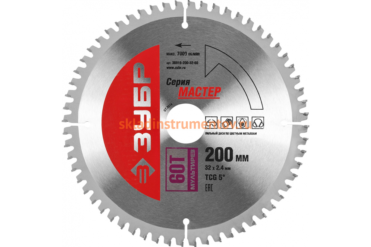 —Диск пильный по алюминию, ламинату, пластику, ДСП МАСТЕР Точный-МУЛЬТИ рез (200х32 мм; 60Т) Зубр 36916-200-32-60—