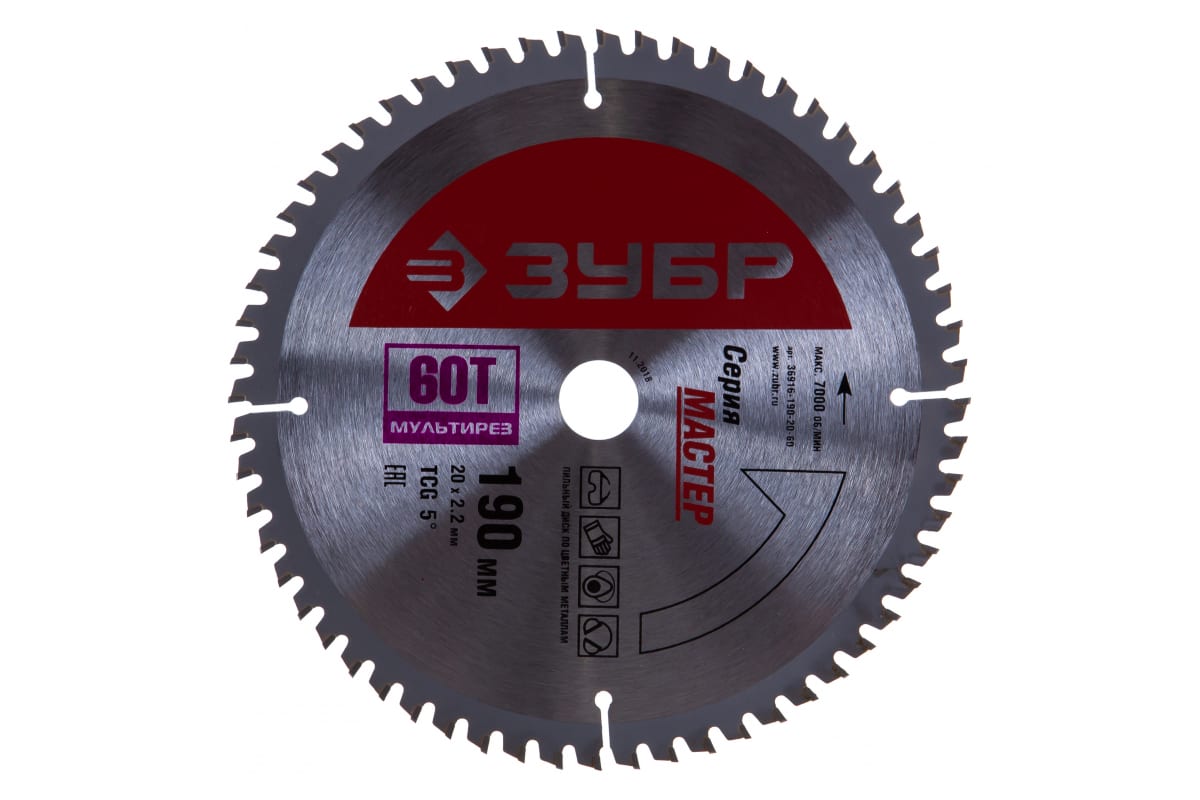 —Диск пильный по алюминию, ламинату, пластику, ДСП (190 x 20; 60Т) "МАСТЕР" "Точный-МУЛЬТИ рез" Зубр 36916-190-20-60—