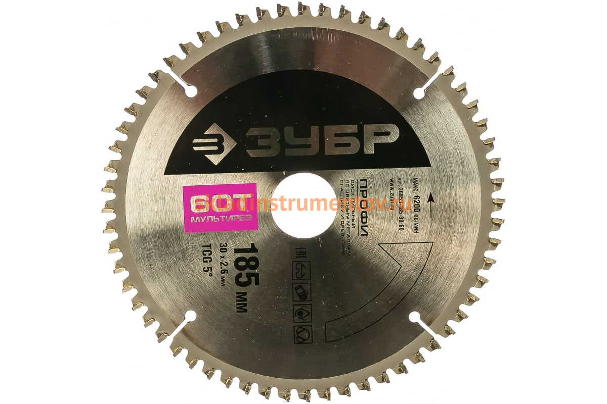 Диск Зубр 36853-185-30-60 является сменным элементом для торцовочных, циркулярных пил и распиловочных станков. Применяется для чистого, качественного пропила по алюминию, цветным металлам, пластику, ламинированным плитам, комбинированным материалам, ламинированным ДСП и ДВП. Зубья изготовлены из улучшенного сплава ВК6Х и ВК8Х. Форма зубьев — TCG. Корпус диска изготовлен из высокоуглеродистой стали 65. Каждый диск проходит алмазную заточку на станках с ЧПУ, закалку с дополнительной стадией термообработки и контроль балансировки.