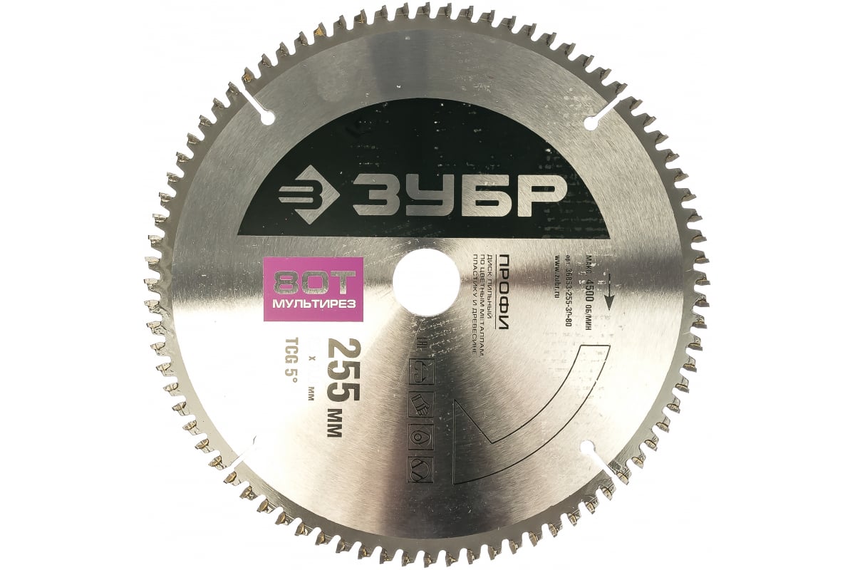 Диск Зубр 36853-255-30-80 является сменным элементом для торцовочных, циркулярных пил и распиловочных станков. Применяется для чистого, качественного пропила по алюминию, цветным металлам, пластику, ламинированным плитам, комбинированным материалам, ламинированным ДСП и ДВП. Зубья изготовлены из улучшенного сплава ВК6Х и ВК8Х. Форма зубьев — TCG. Корпус диска изготовлен из высокоуглеродистой стали 65. Каждый диск проходит алмазную заточку на станках с ЧПУ, закалку с дополнительной стадией термообработки и контроль балансировки.