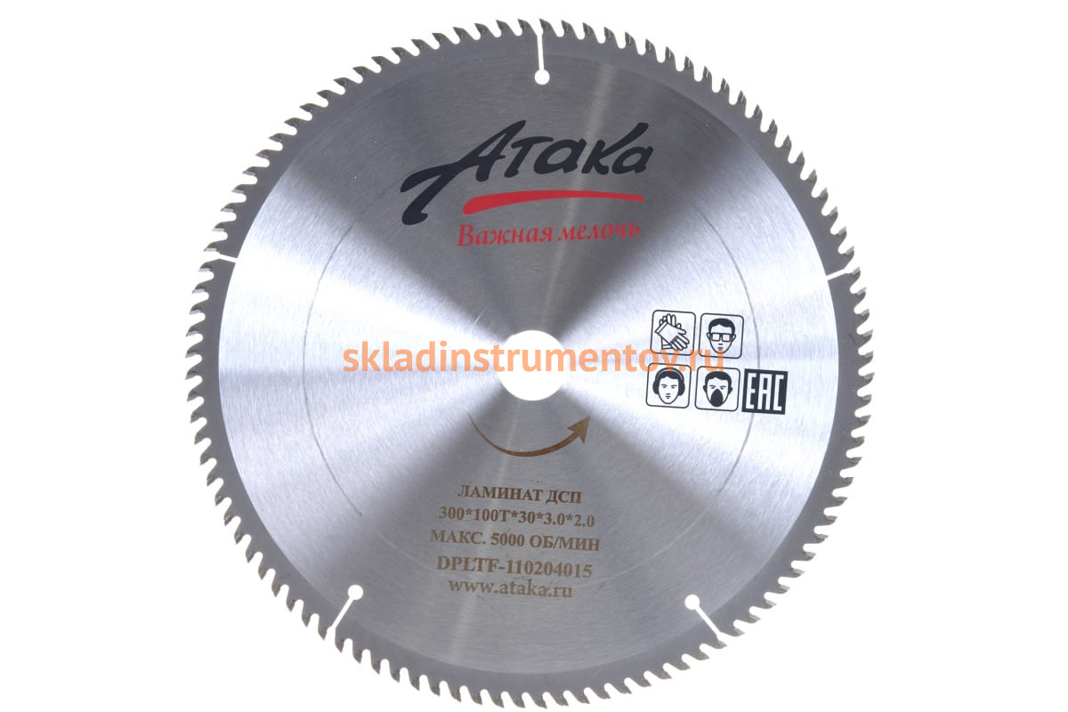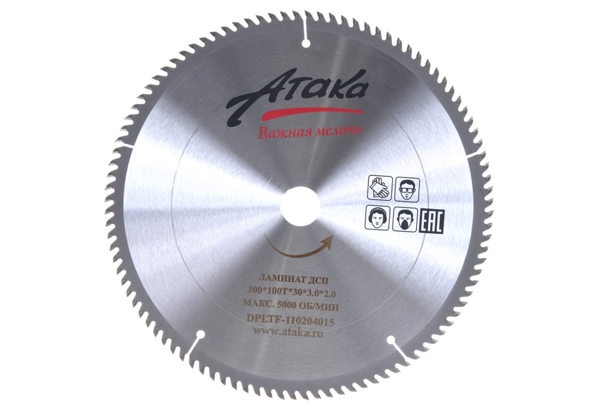 —Диск пильный по ламинату и дсп (300х30 мм; 100T; б/рез) АТАКА 8078100—