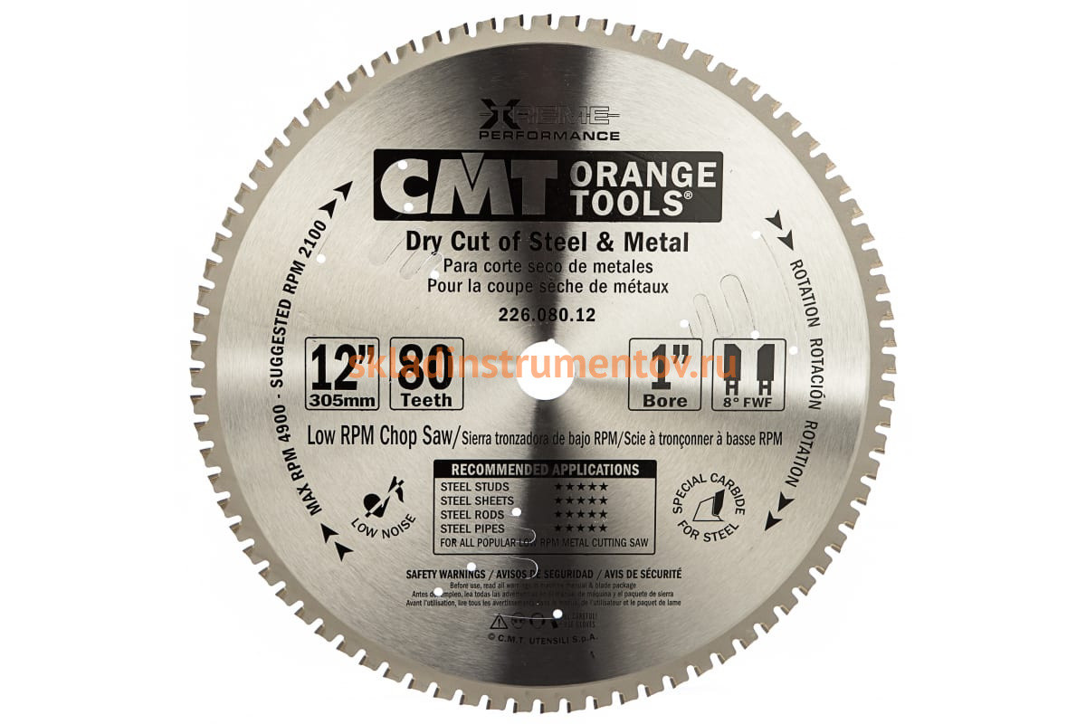 Диск пильный по металлу (305x25.4x2.2/1.8 мм; Z80; 8FWF) CMT 226.080.12 - это сменный элемент, предназначенный для использования с циркулярными пилами. Подходит для обработки стали, чугуна, железа, труб и листового металла. Твердосплавные зубья диска изготовлены из микрозернистого карбида вольфрама, что гарантирует великолепное качество реза и увеличенный срок службы. Не рекомендуется применять для работы с алюминием и медью.