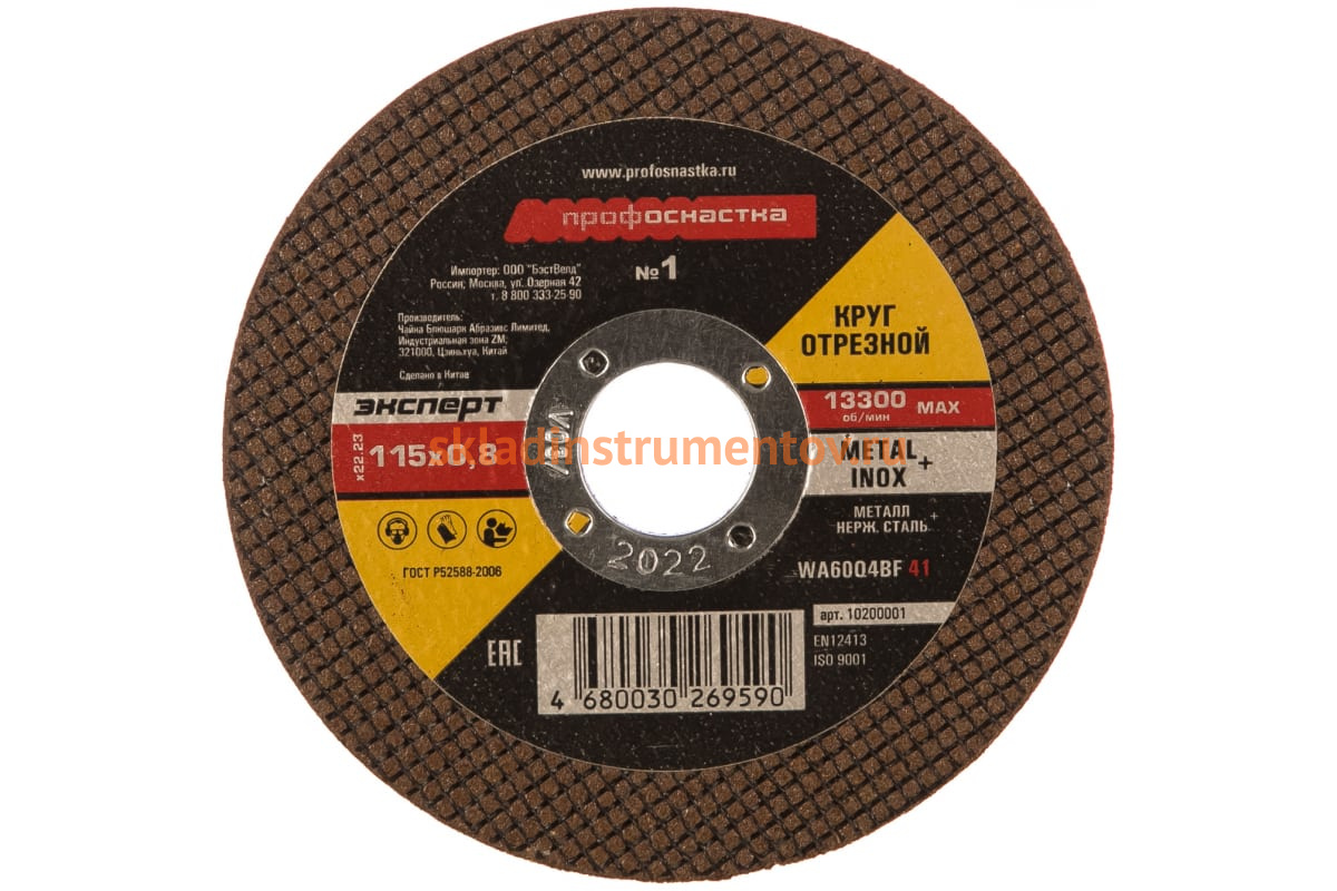 Отрезной круг №1 115*0,8*22 мм тип 41 ТМ Профоснастка предназначен для использования на УШМ. Обеспечивает мягкий рез и имеет высокий коэффициент шлифования (более 1,8) – показатель долговечности ресурса резания. Так же, с учетом цены отрезного диска и его ресурса, низкий показатель стоимости одного реза является наиболее выгодным для сравнения при интенсивном или индустриальном применении. Рекомендуется для резания углеродистых и нержавеющих сталей.