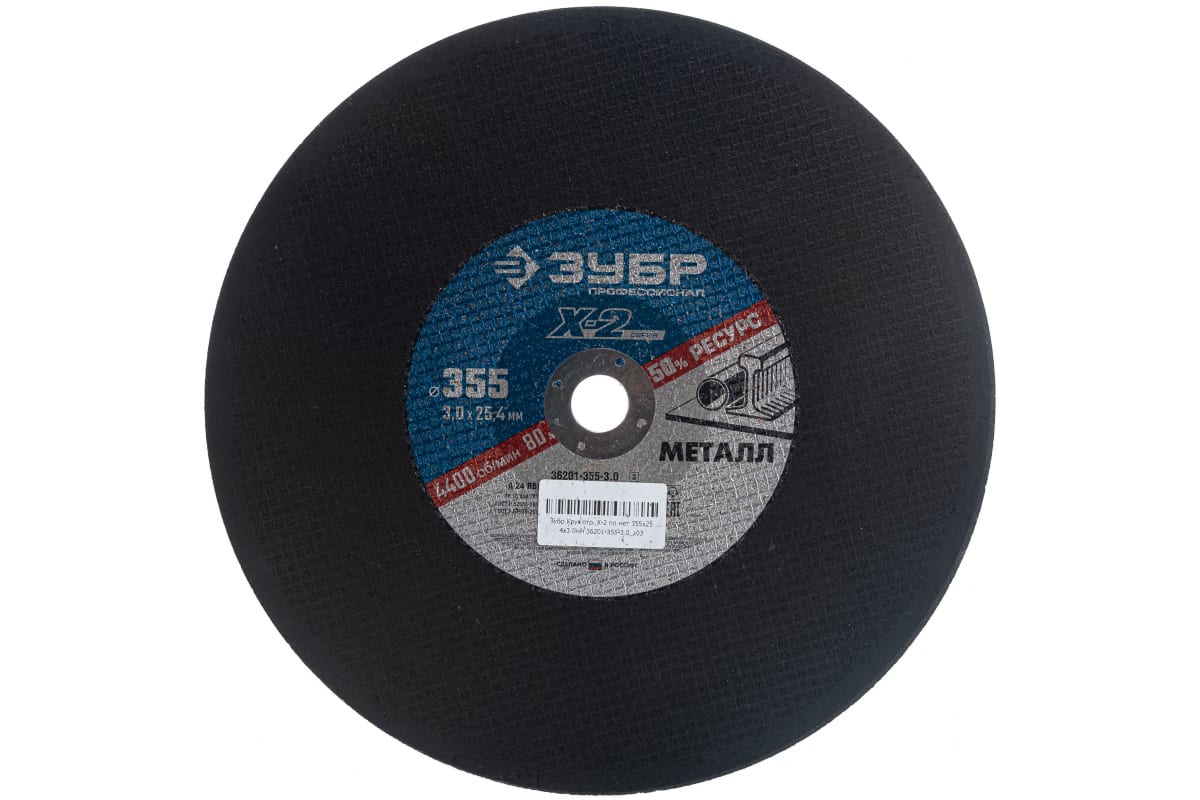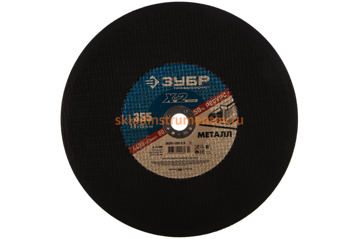 Круг отрезной X-2 Зубр 36201-355-3.0_z03 предназначен для торцовочных электрических пил. Применяется для резки металлических деталей и заготовок, чугунного литья, строительной арматуры и других материалов. Круг оснащен двуслойным армированием полиамидными сетками. Абразивная составляющая - оксид алюминия до 98%. Связующее вещество изготовлено на основе быстросохнущих спиртовых синтетических смол с полным отсутствием содержания серы и хлора.