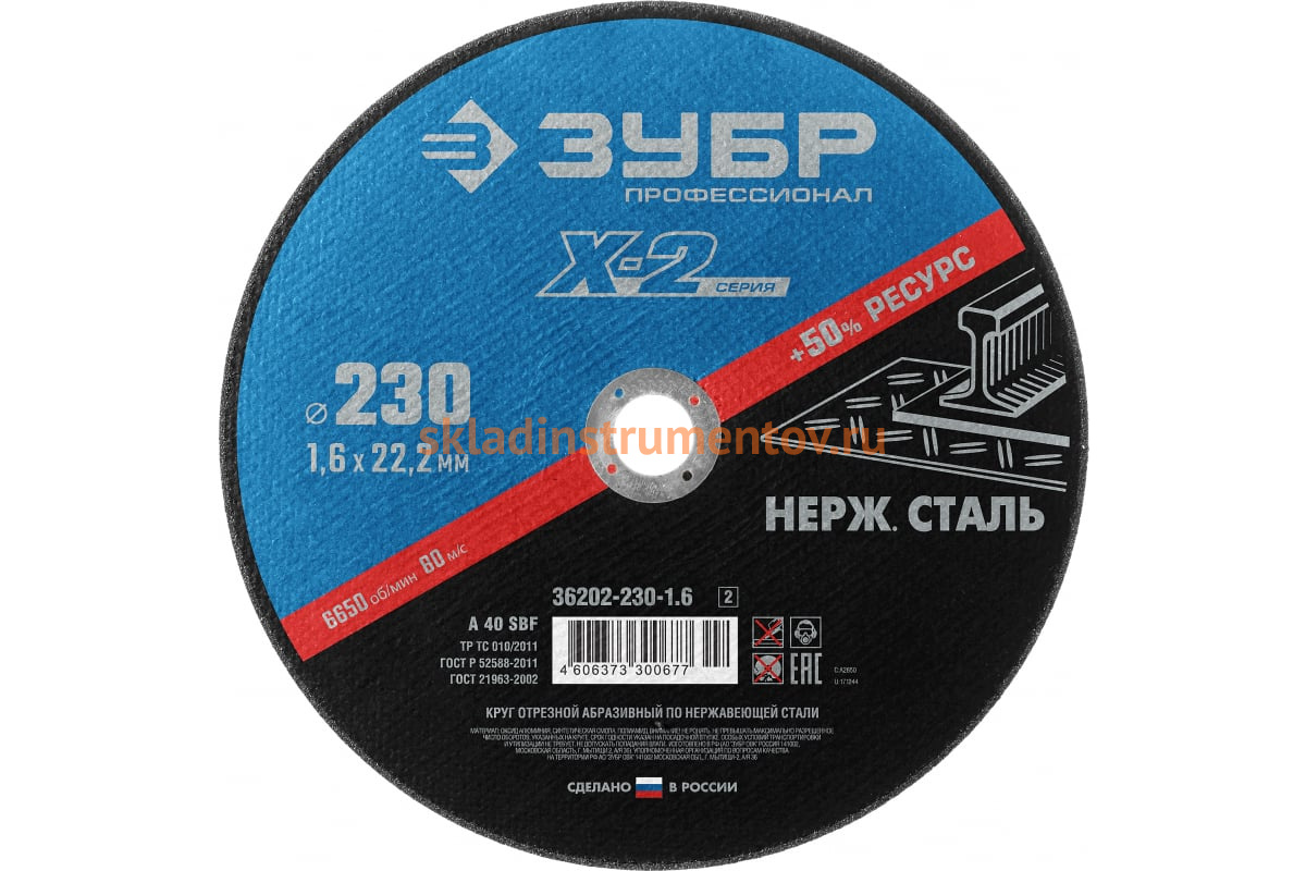 Круг отрезной X-2 Зубр 36202-230-1.6_z03 предназначен для угловых шлифовальных машин и ручных резчиков. Применяется для резки заготовок из нержавеющей стали, листовой нержавеющей стали, а также вязких сплавов из цветных металлов. Круг оснащен двуслойным армированием полиамидными сетками. Связующее вещество изготовлено на основе быстросохнущих спиртовых синтетических смол с полным отсутствием содержания серы и хлора.