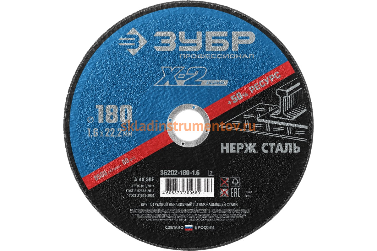 Круг отрезной X-2 Зубр 36202-180-1.6_z03 предназначен для угловых шлифовальных машин и ручных резчиков. Применяется для резки заготовок из нержавеющей стали, листовой нержавеющей стали, а также вязких сплавов из цветных металлов. Круг оснащен двуслойным армированием полиамидными сетками. Связующее вещество изготовлено на основе быстросохнущих спиртовых синтетических смол с полным отсутствием содержания серы и хлора.