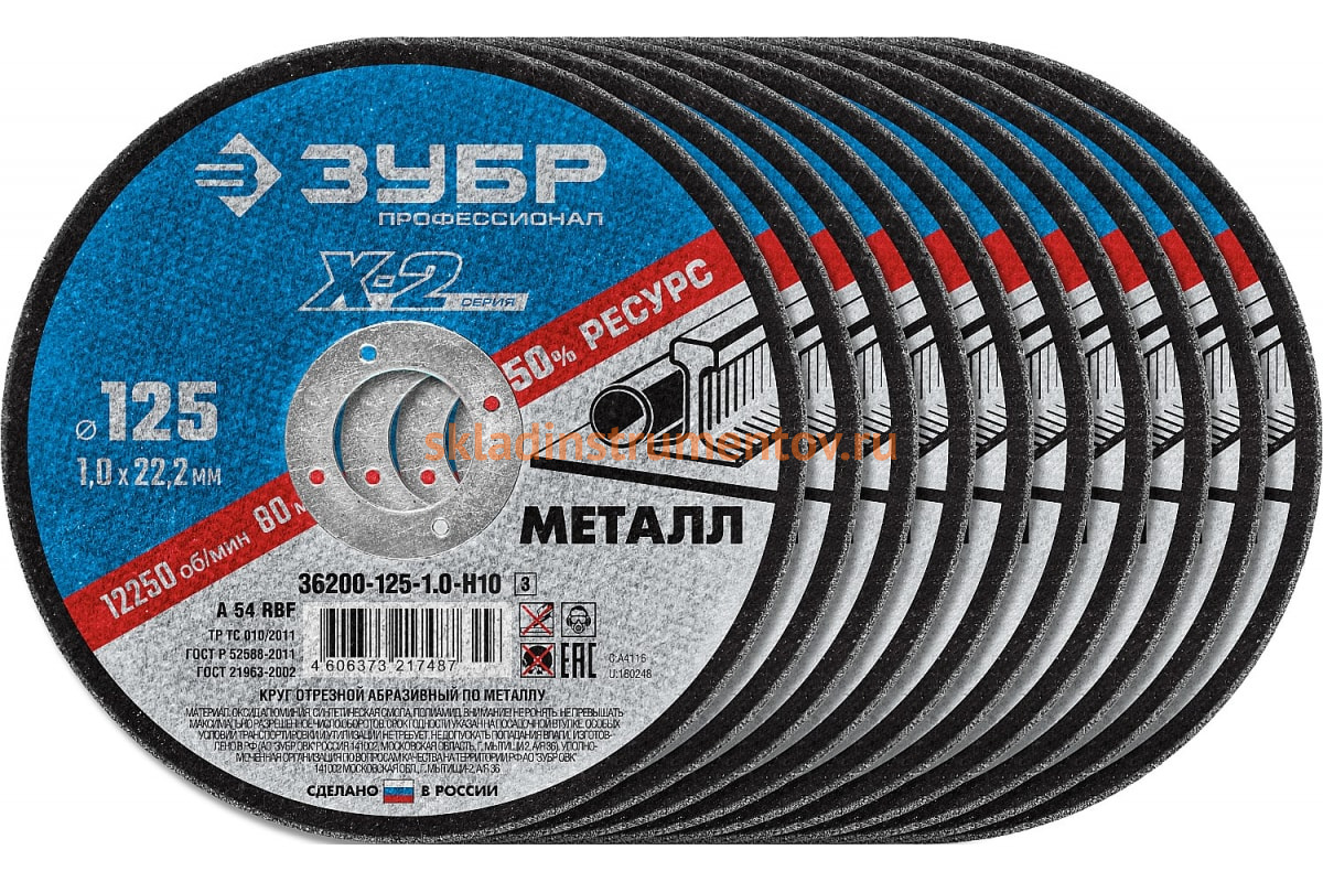 Набор отрезных кругов применяется на углошлифовальных машинах с рабочим диаметром Д125мм при резке листового металла, металлических конструкций и заготовок, а также строительной арматуры диаметром до 22мм.