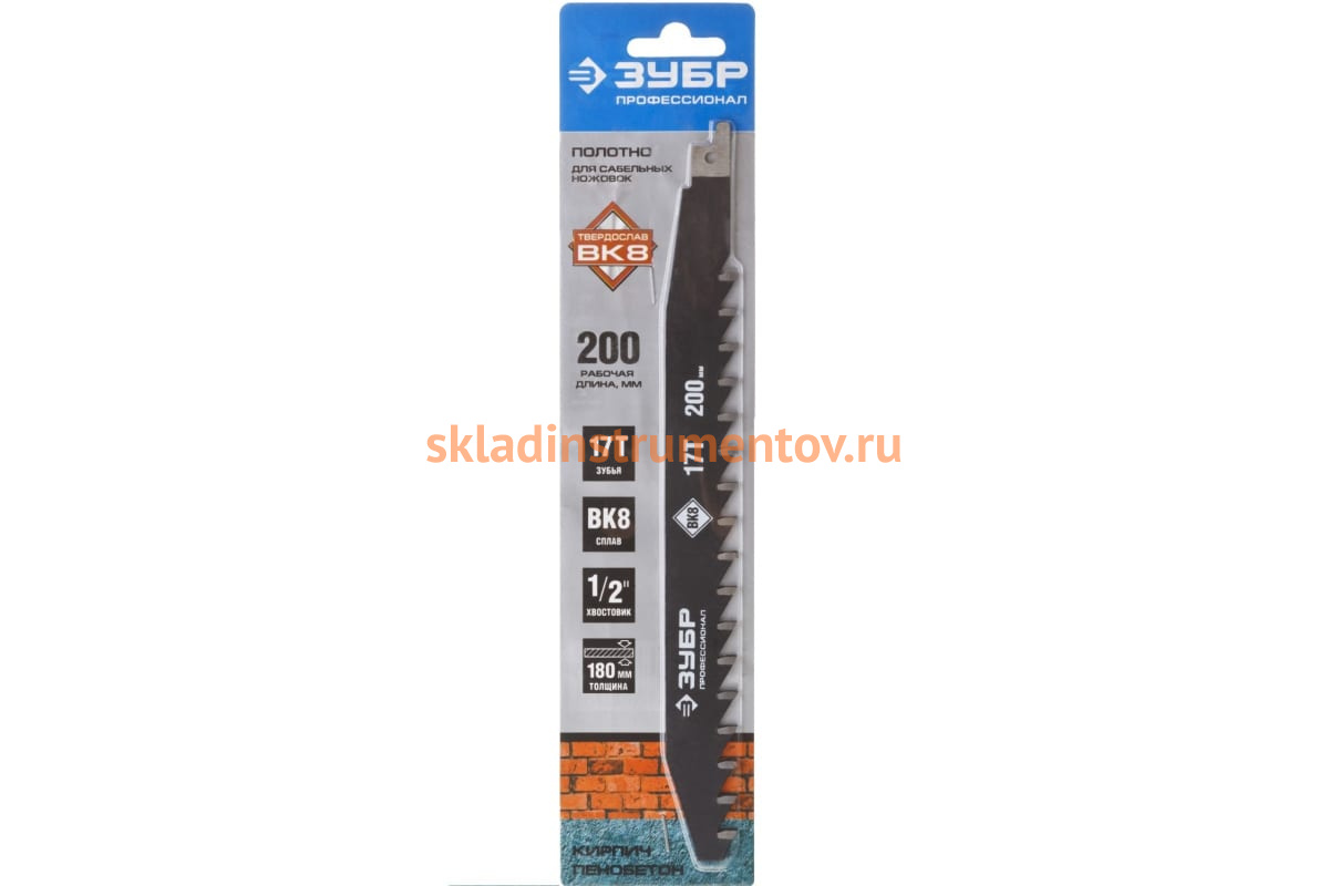 Полотно ПРОФЕССИОНАЛ Зубр 159770-17 является сменным элементом для сабельной электроножовки мощностью не менее 1000 Вт. Применяется для резки легкого пенобетона, строительного кирпича и гипсокартонных плит. Изготовлено из качественной высокоуглеродистой закалённой стали, что придаёт полотну дополнительную стойкость к излому и перегибу. Трехгранная заточка твердосплавных зубьев гарантирует лёгкий и комфортный рез без грубых трещин и сколов.