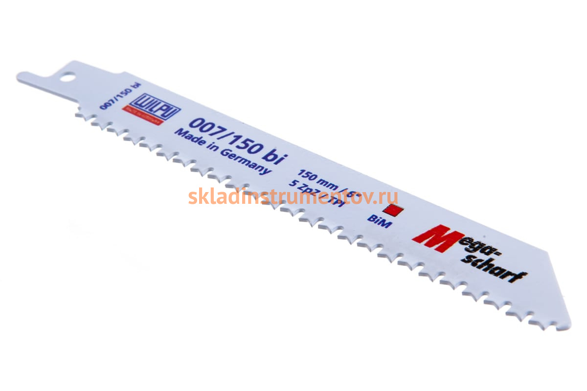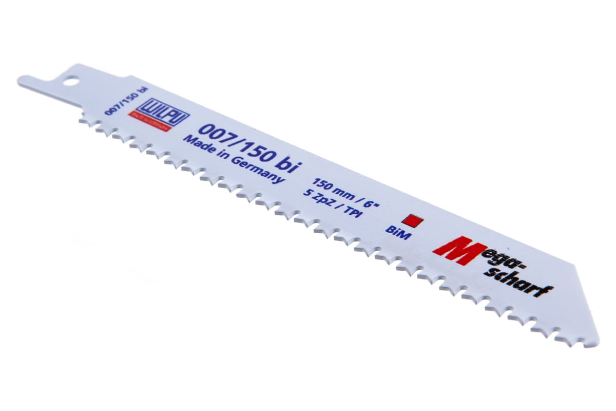 Полотно сабельное 007/150 bi WILPU 1861500005 является сменным элементом для сабельной ножовки. Применяется для резки металла толщиной 2.5-10 мм, древесины и пластиков. Изготовлено из биметалла. Заточка зубьев гарантирует лёгкий и комфортный рез без грубых трещин и сколов. Количество – 5 шт. Шаг 5 TPI.