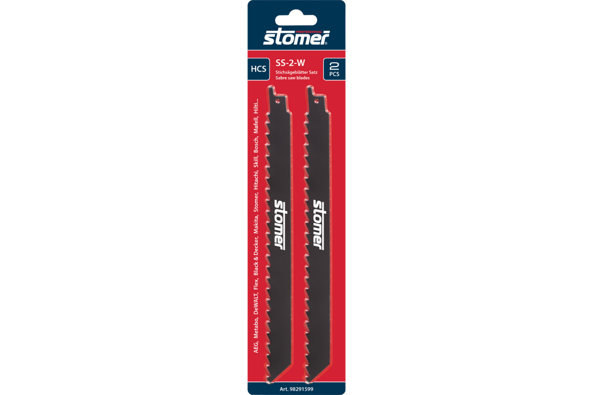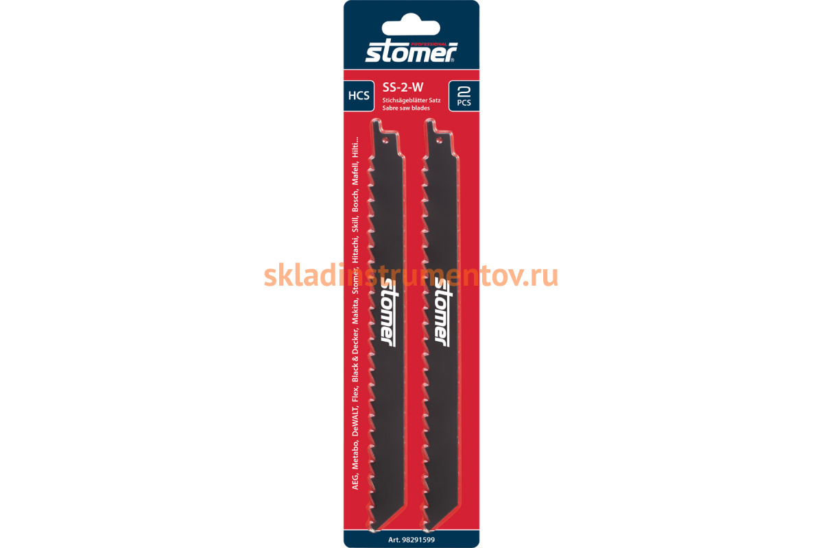 Пильные полотна SS-2-W STOMER 98291599 имеют универсальный хвостовик и подходят к большинству сабельных пил для прямого быстрого и грубого пропила во всех типах древесины и ДСП. В комплекте два полотна.