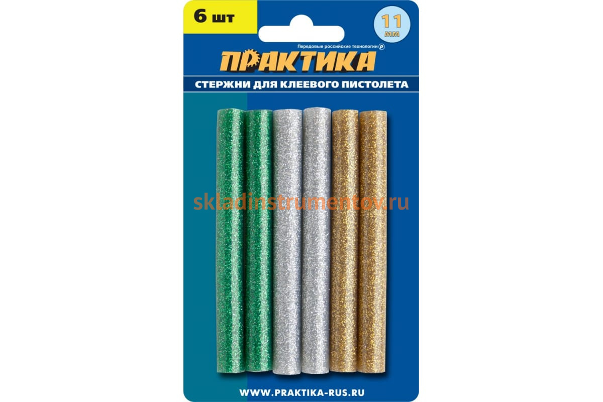 —Клей для клеевого пистолета цветной (6 шт; 11х100 мм; 3 цвета) ПРАКТИКА 649-356—