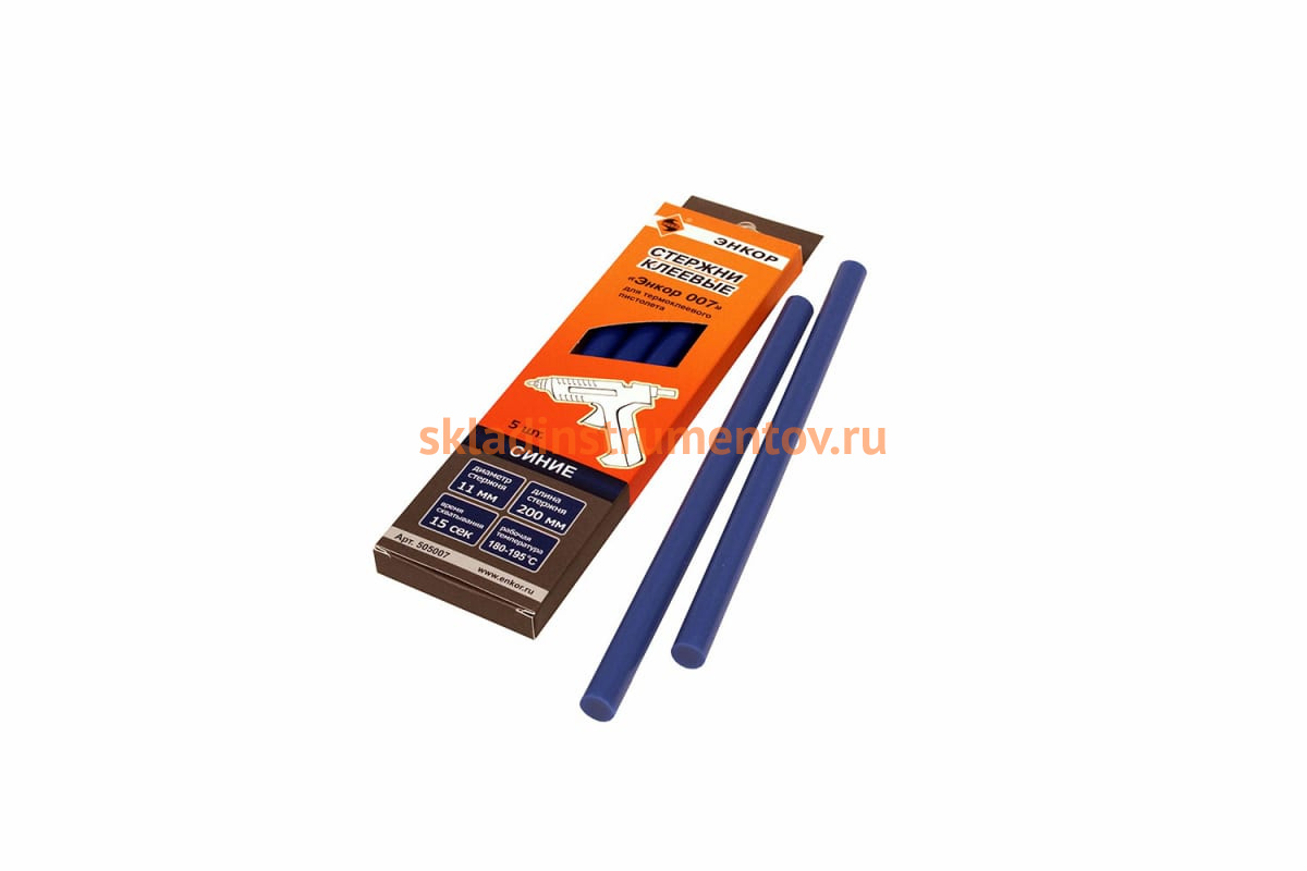 Стержни клеевые Энкор 007 505007 являются универсальными и используются для надежного и безопасного склеивания бумаги, древесины, войлока, стекла и т.д. За 15 секунд схватывают материал и не оставляют следов.