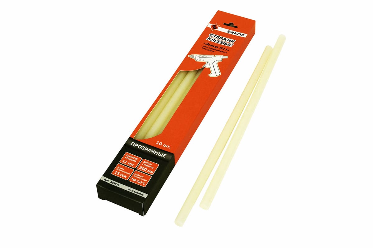 Стержни клеевые Энкор 011 505011 являются универсальными и используются для надежного и безопасного склеивания бумаги, древесины, войлока, стекла и т.д. За 15 секунд схватывают материал и не оставляют следов.