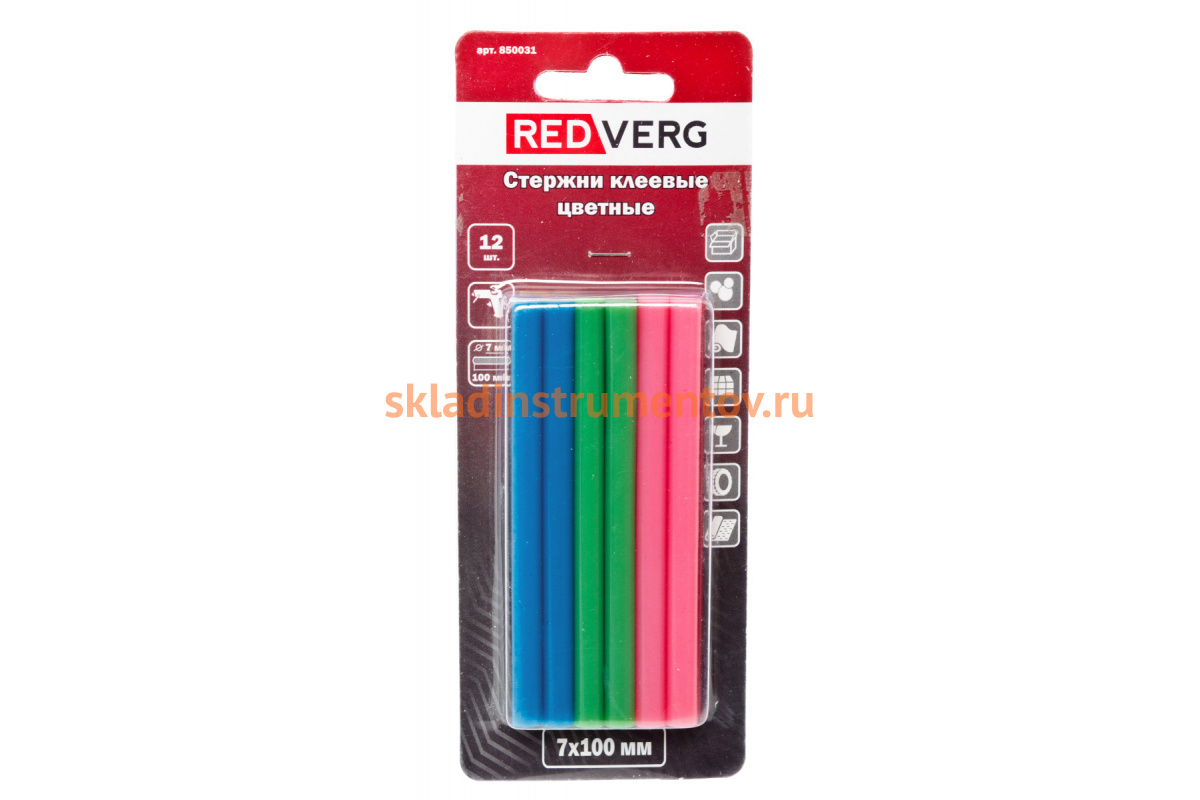 —Клей для клеевого пистолета (7х100 мм; цветной; 12 шт.) REDVERG 850031 6624643—