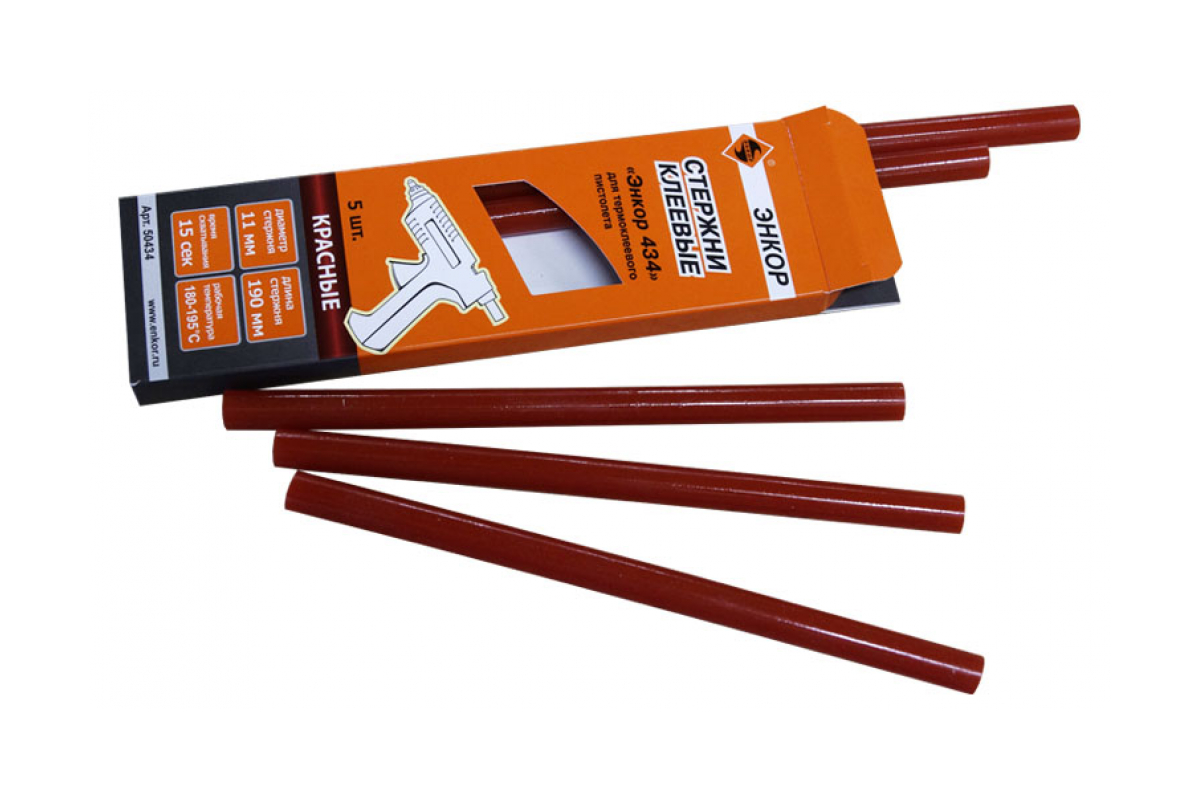 —Стержень клеевой 434 (11х190 мм; 5 шт.; красный) Энкор 50434—