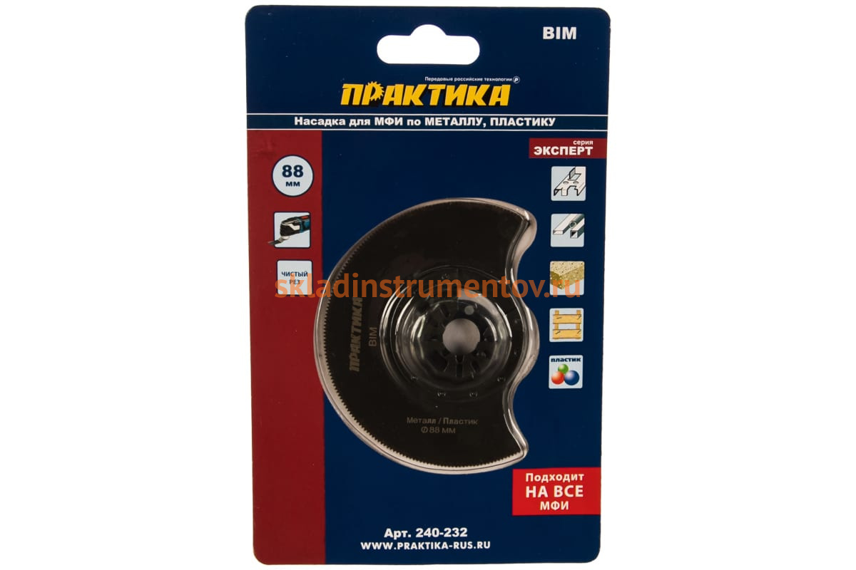 Насадка для МФИ (88 мм) ПРАКТИКА 240-232 используется совместно с многофункциональным инструментом. Применяется для обработки стали, цветных металлов, деревянных и пластиковых изделий, выборки пазов, отрезания труб и профилей, вырезания различных проемов в листовых материалах. Насадка изготовлена из биметалла.