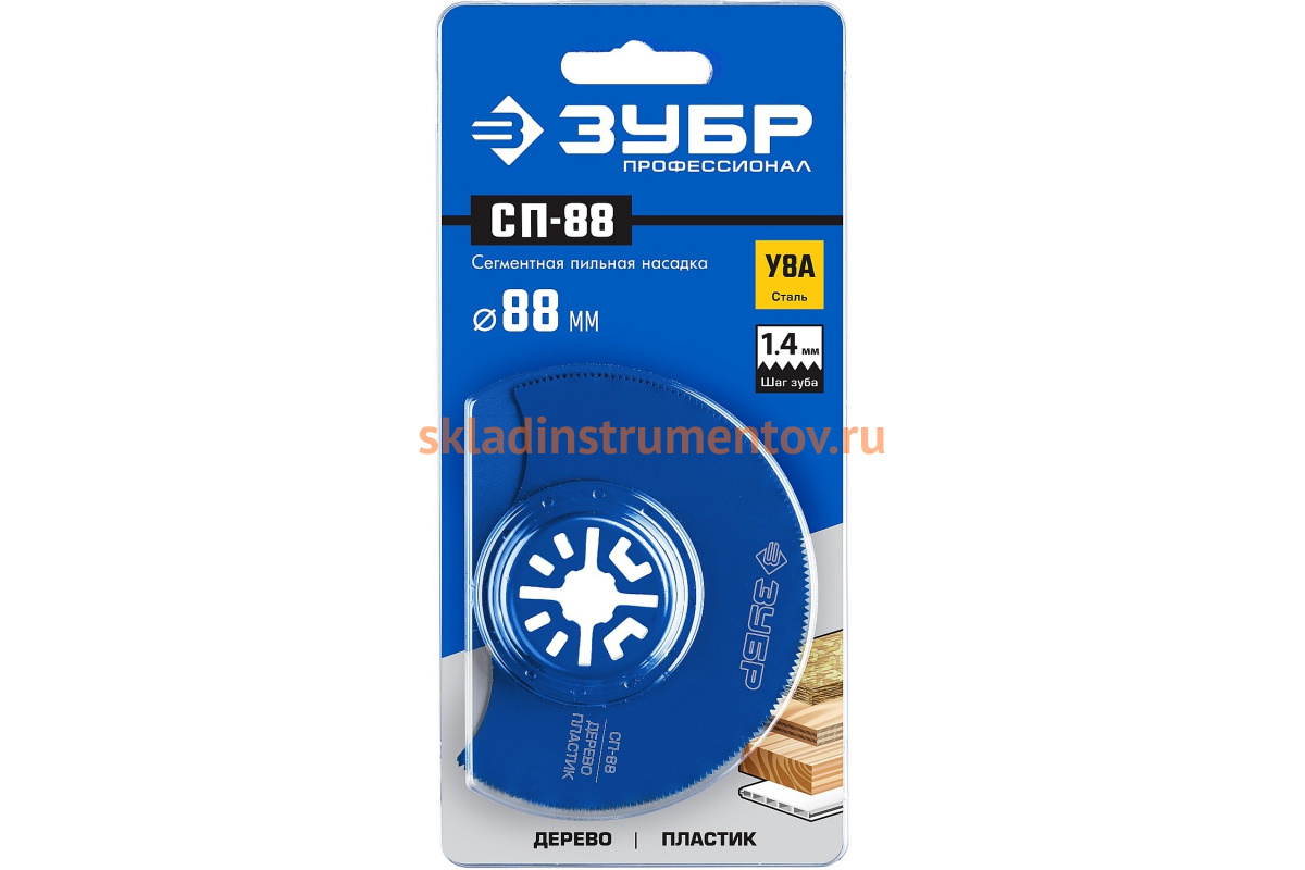 Пильная насадка СП-88 Зубр 15567-88 предназначена для резки изделий из древесины и пластика с помощью многофункционального инструмента. Изготовлена из высококачественной инструментальной стали У8А.