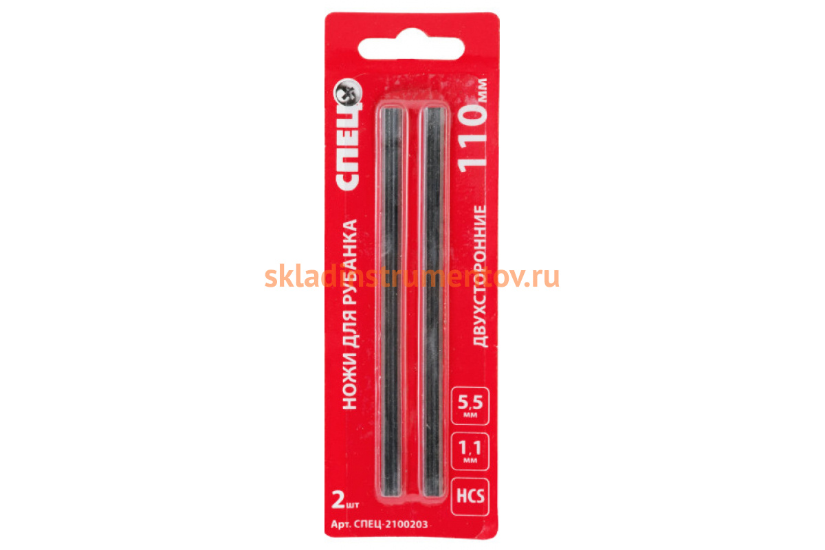 —Нож двухсторонний стальной (2 шт; 110x5.5x1.1 мм) для рубанка СПЕЦ 2100203—