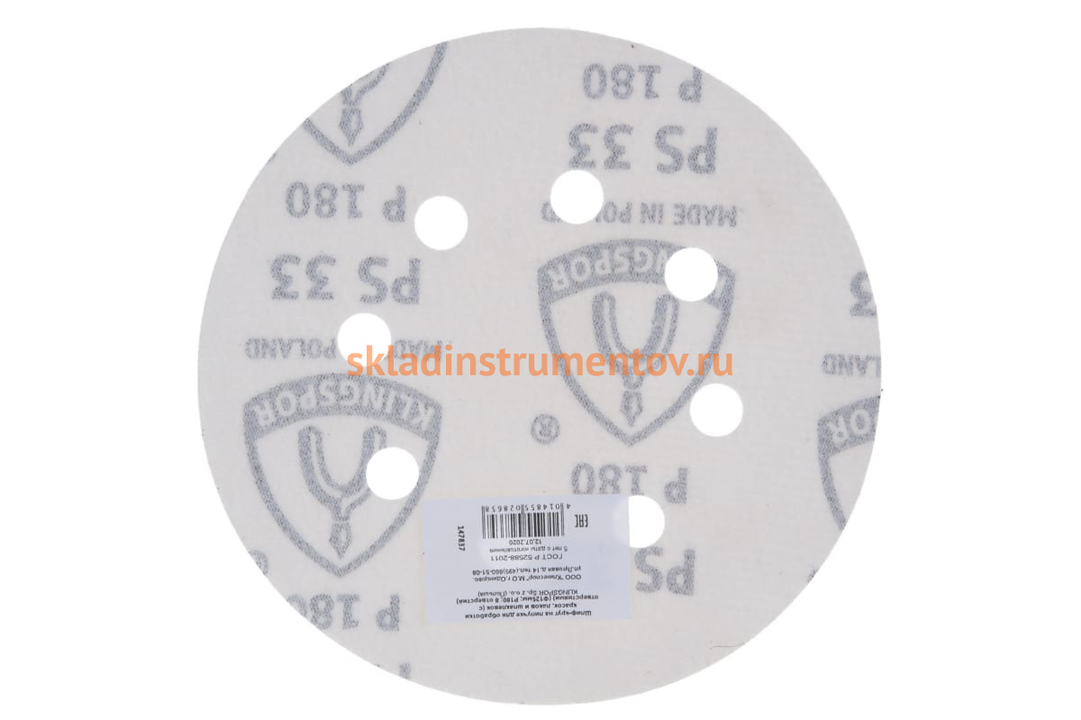 Шлифовальный круг KLINGSPOR 147837 является сменным элементом для эксцентриковых шлифовальных машин. Применяется для шлифования лаков, красок и шпаклевок. Возможно использование для обработки деревянных заготовок и изделий. Круг имеет бумажную основу. К инструменту крепится при помощи велкро-основы (липучки). Связка — синтетическая смола. Зерно — корунд. Вид насыпки — полуоткрытая.