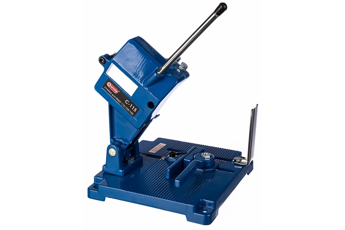 Стойка ДИОЛД МШУ-С-115 50011010 предназначена для угловых шлифовальных машин с диаметром диска 115 мм, 125 мм, 150 мм и используется для стационарных работ. Оснастка позволяет быстро и точно разрезать под прямым углом и с наклоном до 45° труб, профилей, полос из металла и других материалов в зависимости от используемого круга.