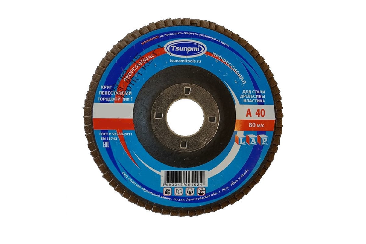 Круг лепестковый универсальный Tsunami КЛТ1 D96100000P18080 может применяться для обработки любого материала: подходит как для металла, так и для дерева или пластика. Имеет выпуклую форму и качественно шлифует поверхность.