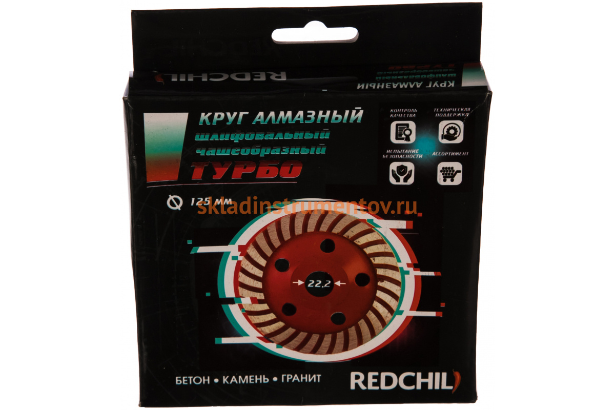 Чашка алмазная турбо REDCHILI 04-125-13 используется совместно с угловыми шлифовальными машинами. Применяется для зачистки и шлифования бетона, камня, гранита. Турбированная поверхность чашки не требует водяного охлаждения во время работы. Оснастка имеет высокую производительность.