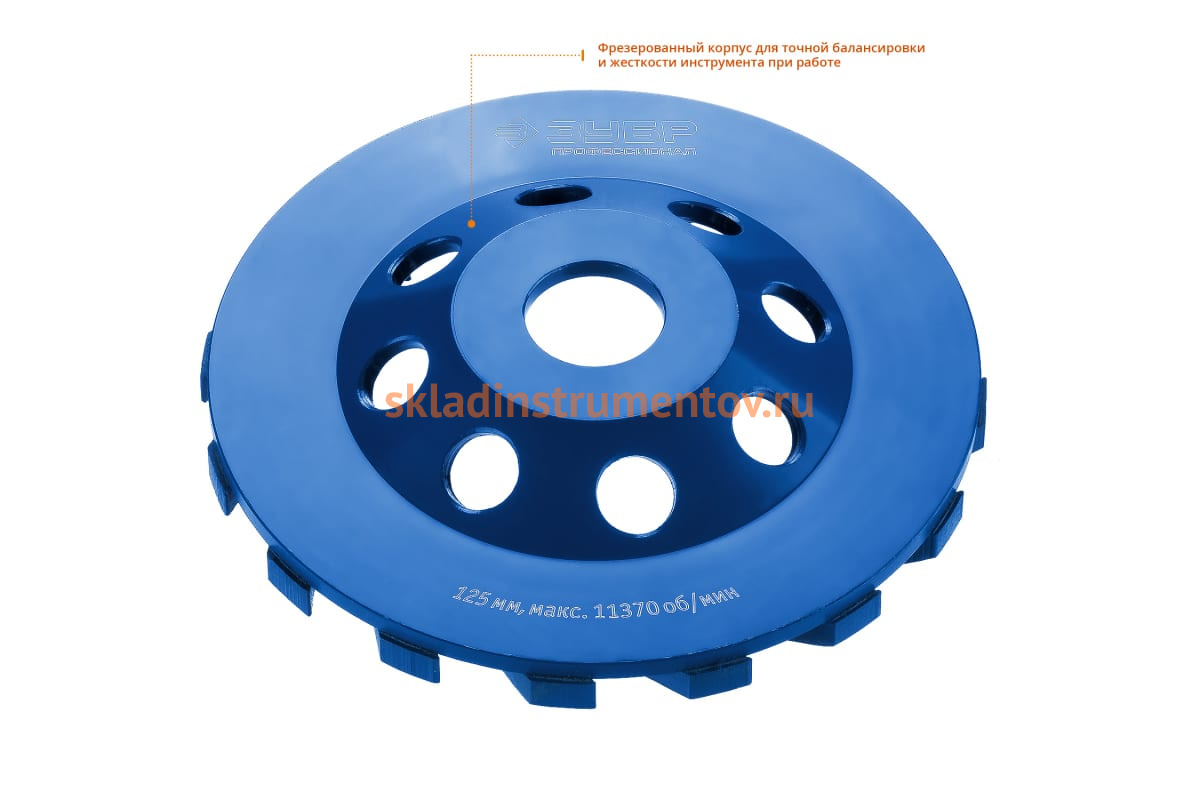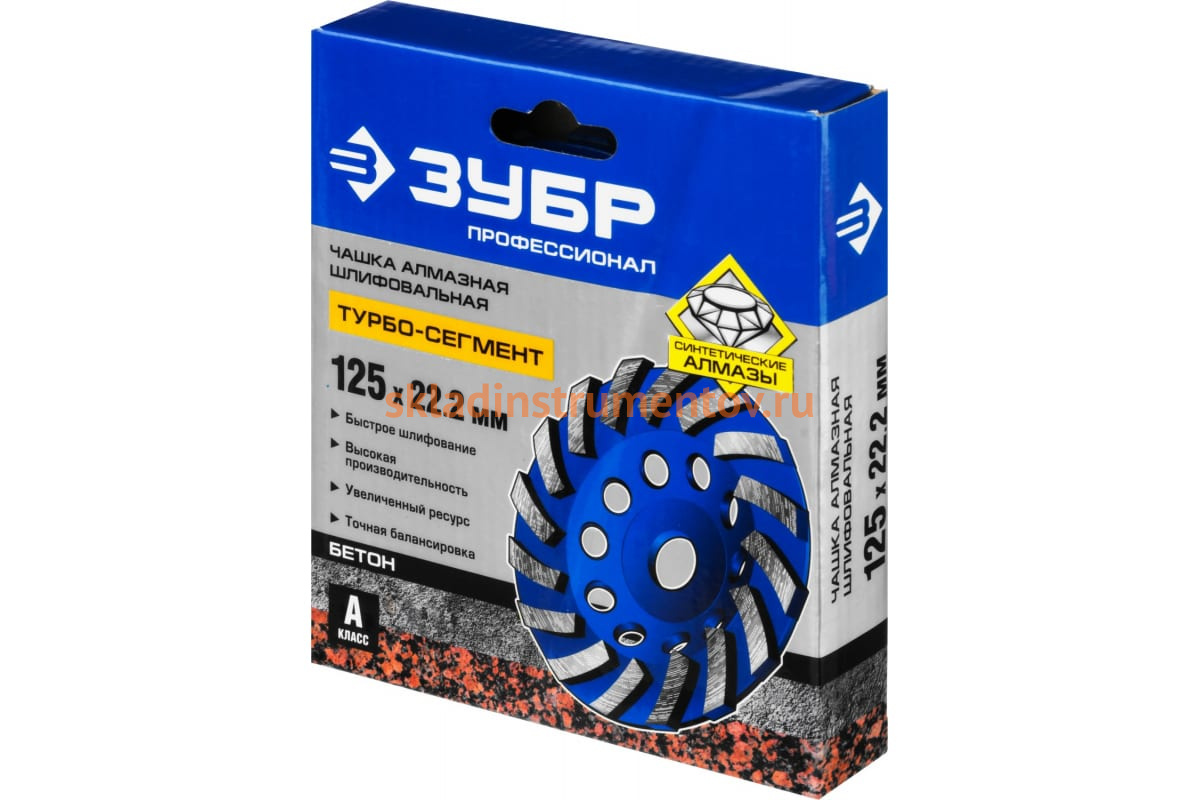 Чашка алмазная турбо 125 мм ЗУБР Профессионал, 33370-125 применяется для шлифования поверхностей из бетона, гранита, природного и искусственного камня.