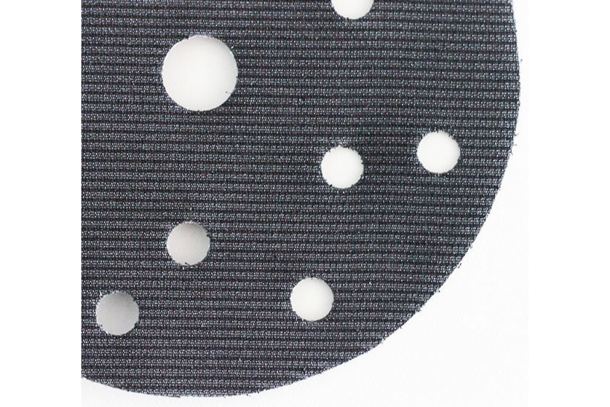 Материал-липучка MIRKA V912150/6+1 приклеивается к основанию подошвы шлифовальной машинки диаметром 150 мм взамен изношенного материала-липучки. Применяется для удержания шлифовальных дисков с 6+1 отверстиями.