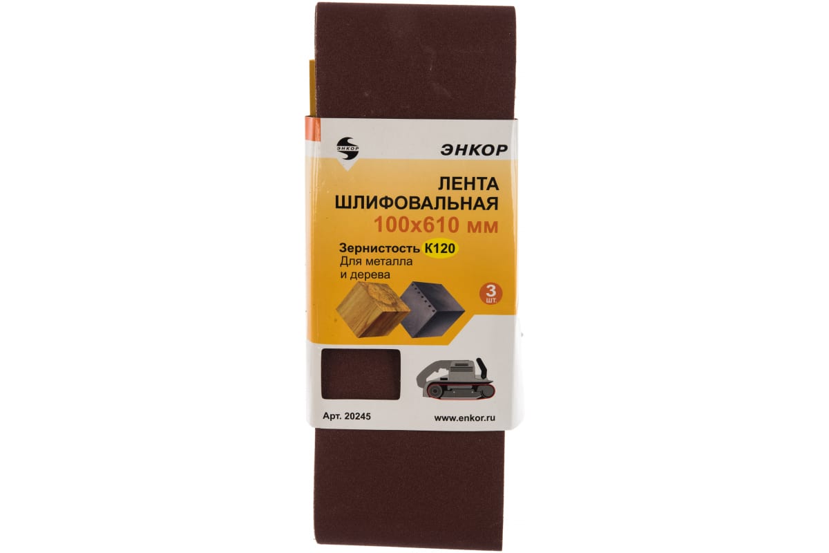 Шлифлента Энкор 20245 применяется в ленточных шлифовальных машинах для обработки деталей с твердой поверхностью. Основой такой ленты является тяжелая ткань из натуральных волокон. Такую ткань тяжело разорвать, прочность обеспечивает и шов, выполненный внахлест под углом. Абразивный материал — оксид алюминия. Смола является связующим элементом базового и дополнительно покрытия. Абразивные зерна покрывают до 95 % поверхности, следовательно, соблюдается высокое качество обработки и долгий срок службы.