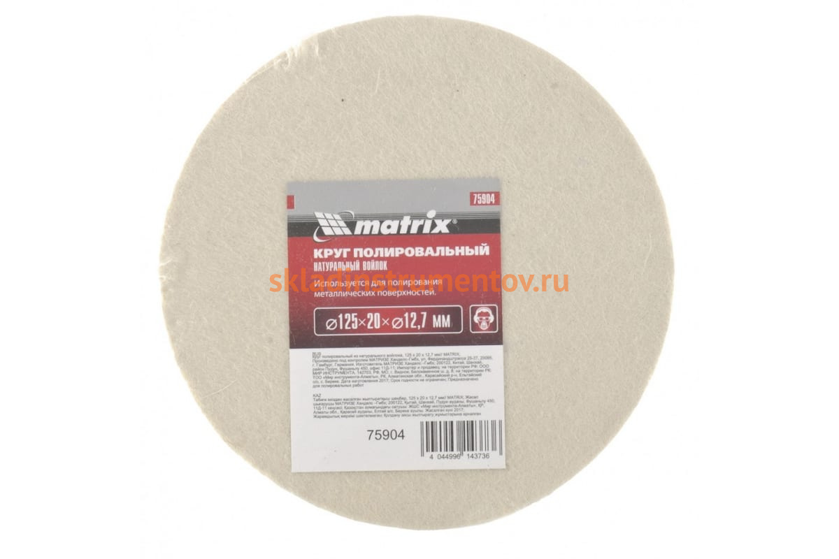 —Круг полировальный из натурального войлока, 125х20х12,7 мм MATRIX 75904—