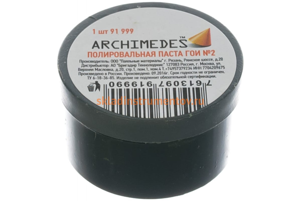 Полировальная паста ГОИ Norma Archimedes 91999 используется при полировке поверхностей из металла, стекла и пластика.
