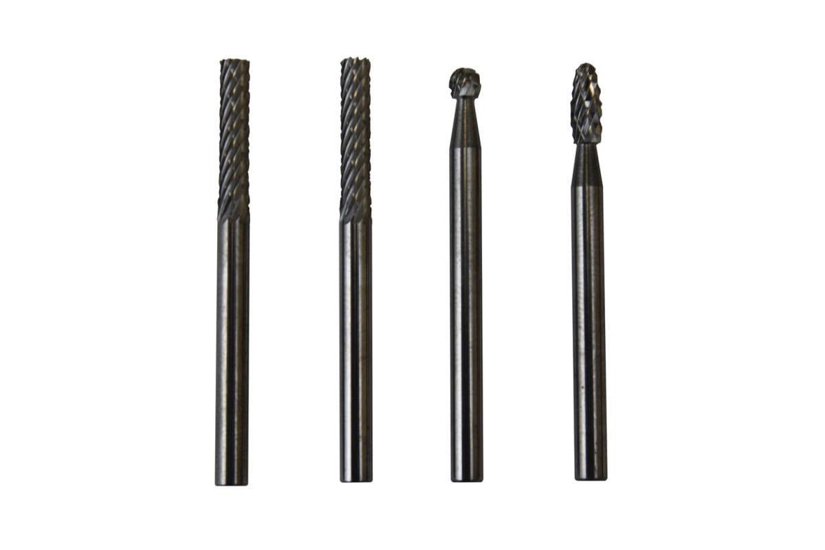 Набор из 4 твердосплавных борфрез с хвостовиком 3 мм. Euroboor RBS.104 изготовлен из высококачественного твердого сплава карбида вольфрама (K30). Могут использоваться для работы с любыми металлическими заготовками. Предназначены для работы с электрическими и пневматическими шлифовальными машинками. Универсальная заточка.