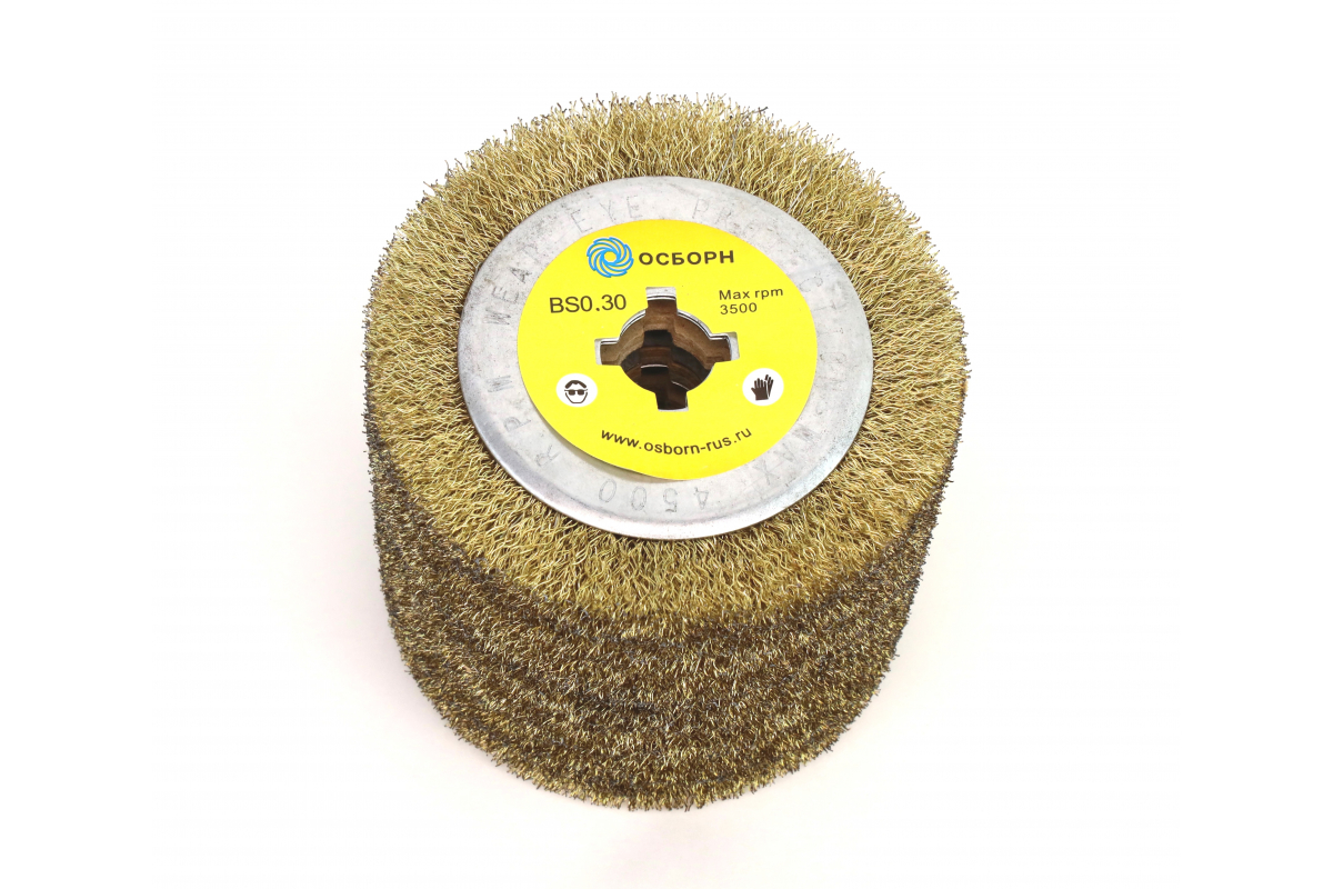Щетка валик (120х100х19 мм; ворс гофр латунир-я сталь 0.30 мм) ОСБОРН 6-031 PLM.RB12010019BS030 предназначена для средней агрессивности браширования (брашировка, текстурирование) плоских изделий из разных пород древесины.