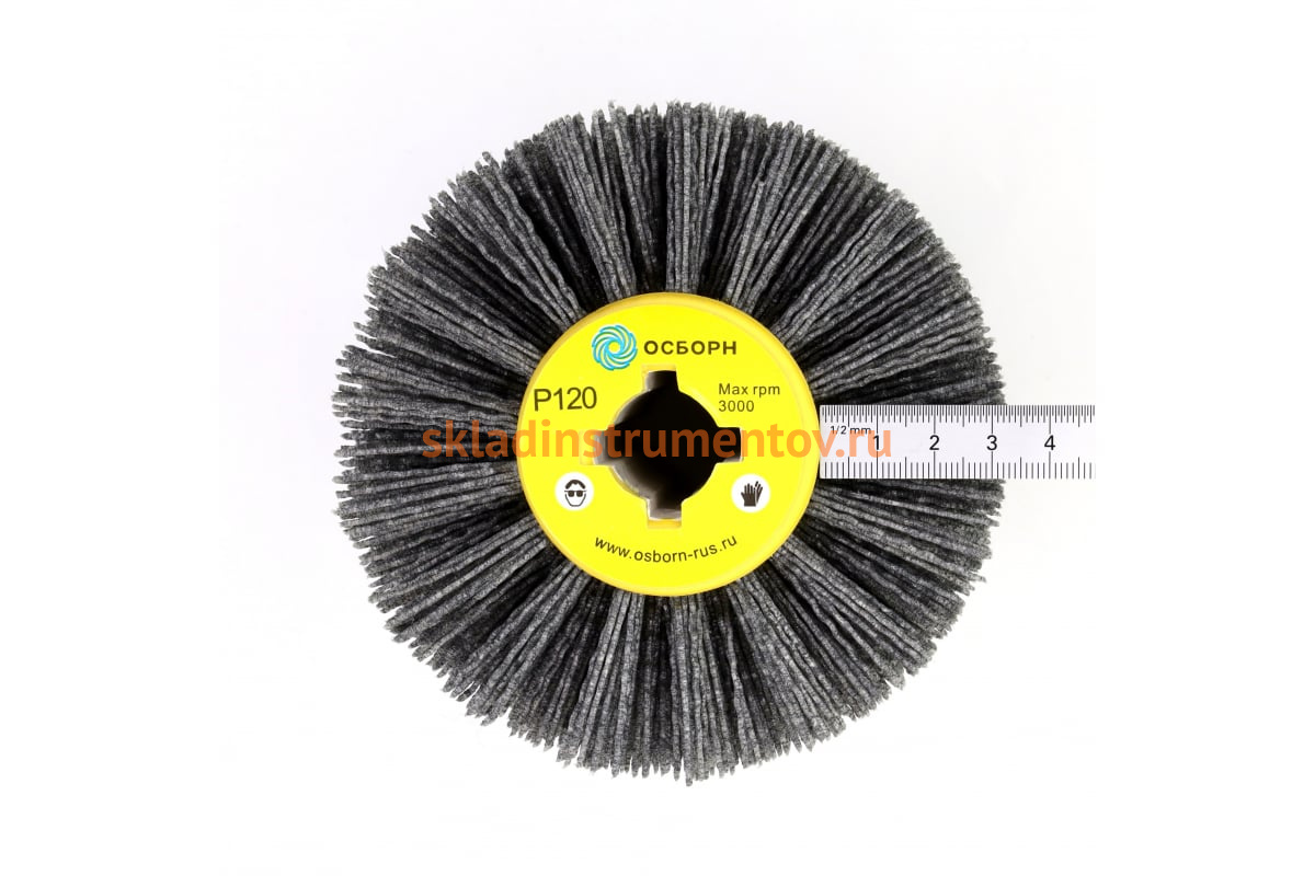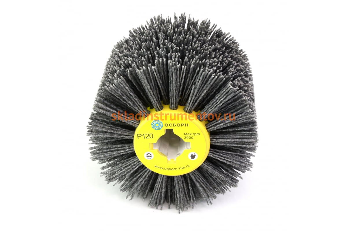 Щетка валик нейлоновая 6-038 (120 мм; P120) для щеточных шлифмашин ОСБОРН PLM.RB12010019P120 рекомендована для любых щеточных шлифовальных машин с валом 19 мм. Подходит для: Sturm AG1014P/IBO-BGM1, Интерскол ШМ-110/1400ЭМ*, Felisatti AP110/1400SE*, Интерскол МШ 110-1010*, Felisatti AGF110-1010E*, ИНСТАР ЭШМ 16100, METABO SE 12-115*, PATRIOT BS 909, Messer M3015, EIBENSTOCK ESM 1310, Mekkan MK81206, CROWN CT13551-110RSV. Щетка предназначена для финишной шлифовки и полировки по плоским поверхностям.