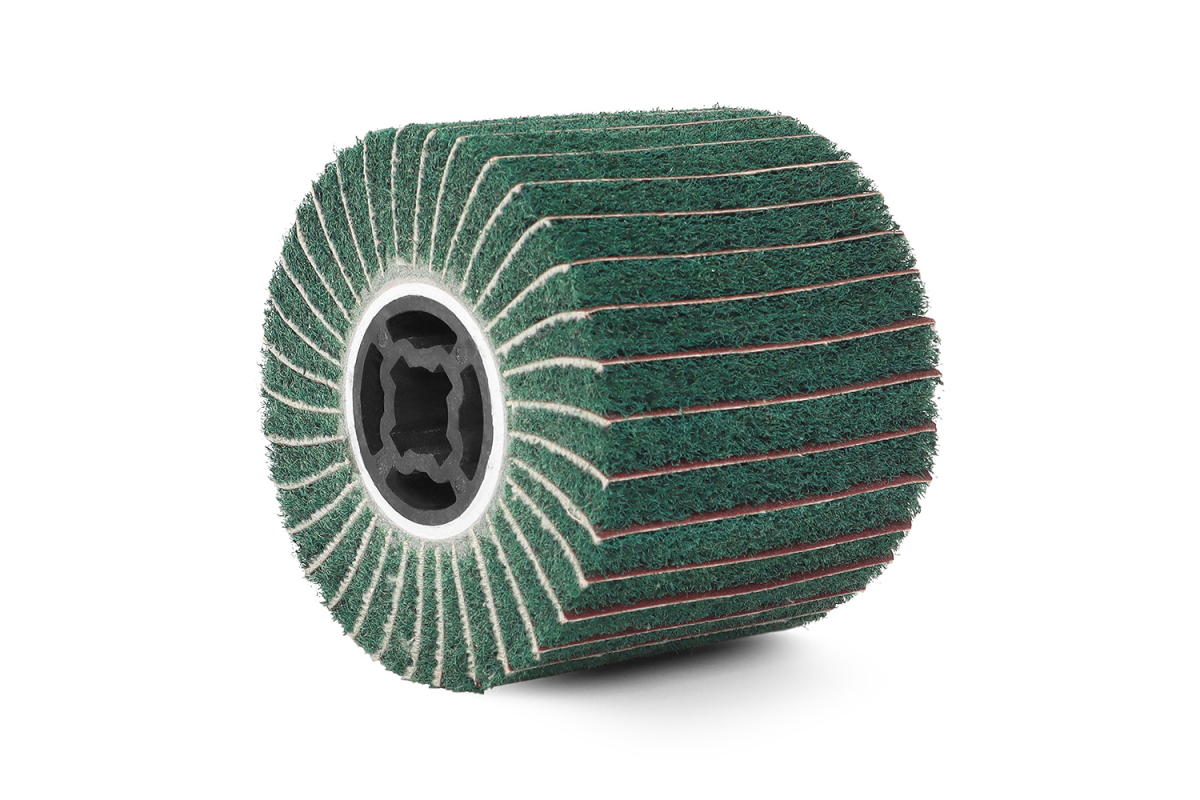 Устанавливается на барабанную шлифовально-полировальную машину MESSER 3015 или на подобные машины других производителей с посадкой 19 мм (ступица со шлицами). Позволяет не только получить однородную поверхность высокого качества, но и удалить царапины или грубую риску после предварительной обработки. Изготовлен из нетканого абразивного материала на основе нормального электрокорунда, чередующегося с лепестками из шлифовальной бумаги