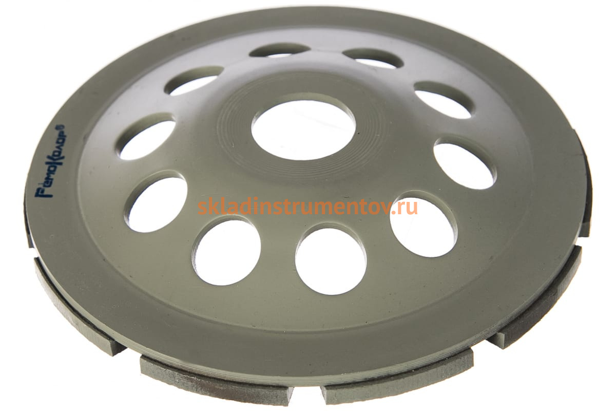 Круг алмазный сегментный, чашечный, шлифовальный, однорядный, 125 мм РемоКолор 74-0-501 используется для шлифовки камня, бетона, мрамора, гранита. Устанавливается на УШМ или шлифмашины для бетона и работает с охлаждением.