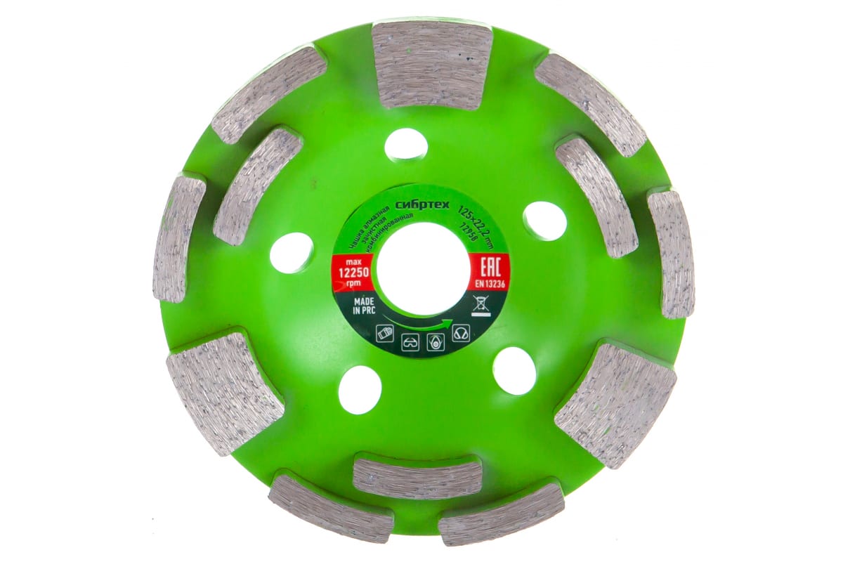 Чашка алмазная зачистная Комбинированная СИБРТЕХ 72958 предназначена для ручных шлифовальных машин. Применяется для обработки бетона, камня, мрамора, гранита и кирпича. Оснастка обеспечивает чистую гладкую поверхность, также подходит для выравнивания незначительных поверхностей. Высота сегментов – 5 мм. Количество сегментов – 12 шт.