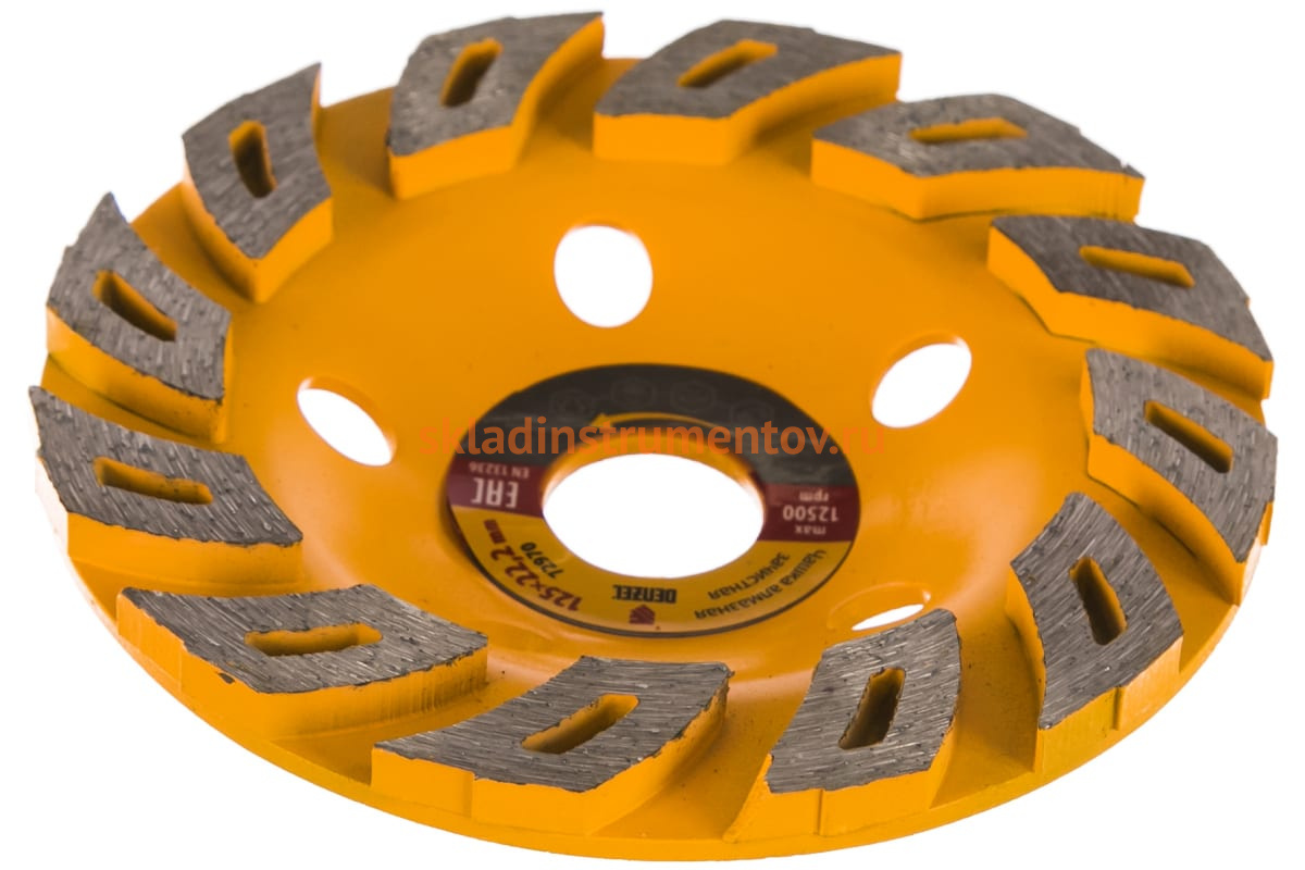 Чашка алмазная зачистная Турбо DENZEL 72970 предназначена для шлифовальных машин. Применяется для зачистки и шлифования бетона, мрамора, кирпича, гранита. Чашка подходит для получения гладких поверхностей. Количество сегментов – 12 шт. Высота сегмента – 6 мм.