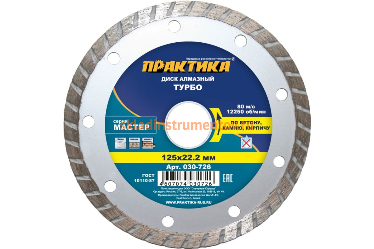 —Диск алмазный турбо Мастер (125х22.2 мм) ПРАКТИКА 030-726—
