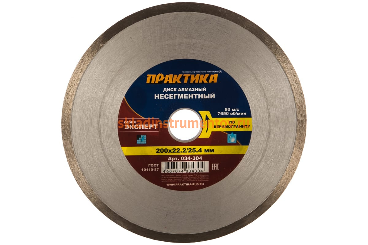 —Диск алмазный по керамограниту Эксперт (200х25.4/22.2 мм) ПРАКТИКА 034-304—