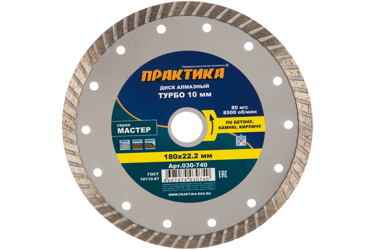 —Диск алмазный турбо Мастер (180х22.2 мм) ПРАКТИКА 030-740—