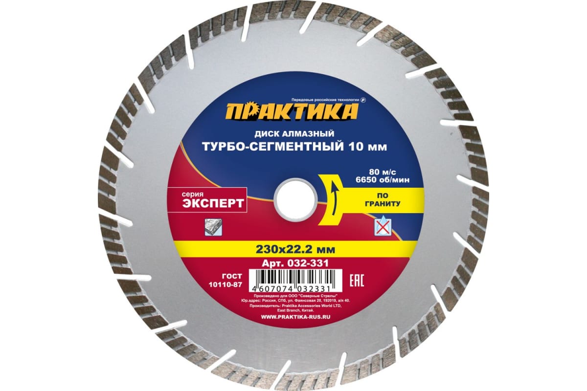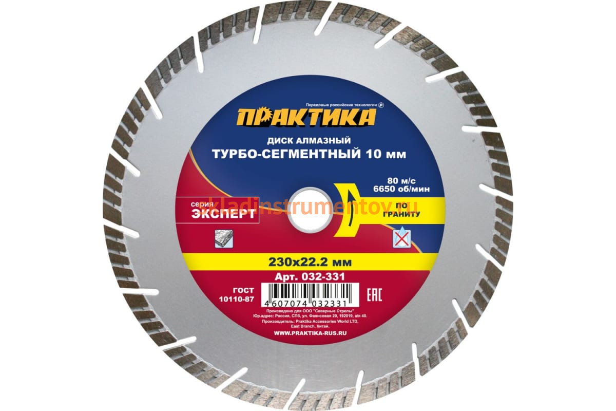 —Диск алмазный Эксперт по граниту (230х22.2 мм) ПРАКТИКА 032-331—
