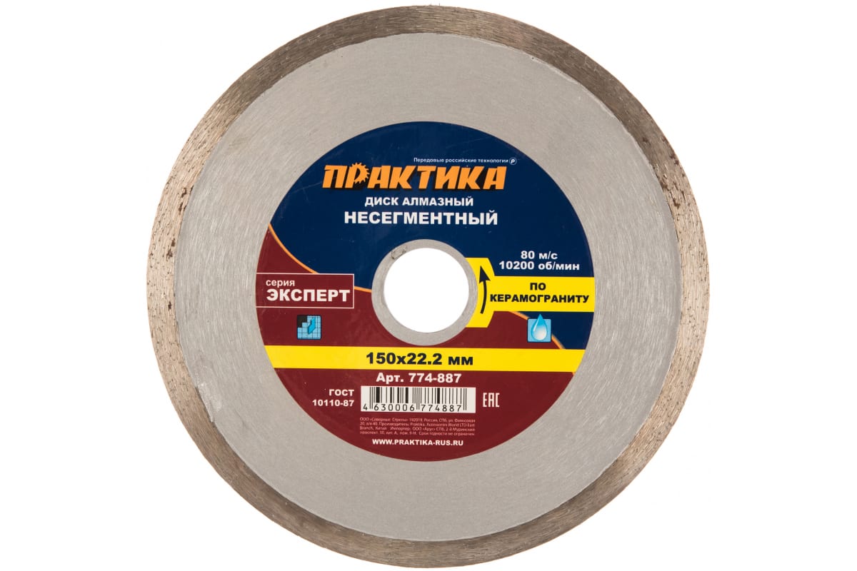 —Диск алмазный Эксперт по керамограниту (150х22.2 мм) ПРАКТИКА 774-887—