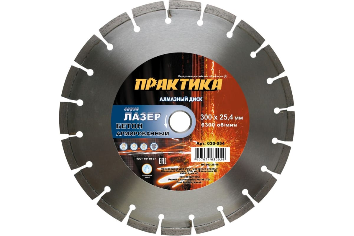 —Диск алмазный сегментный Лазер-45 по бетону (300х25.4 мм) ПРАКТИКА 030-054—