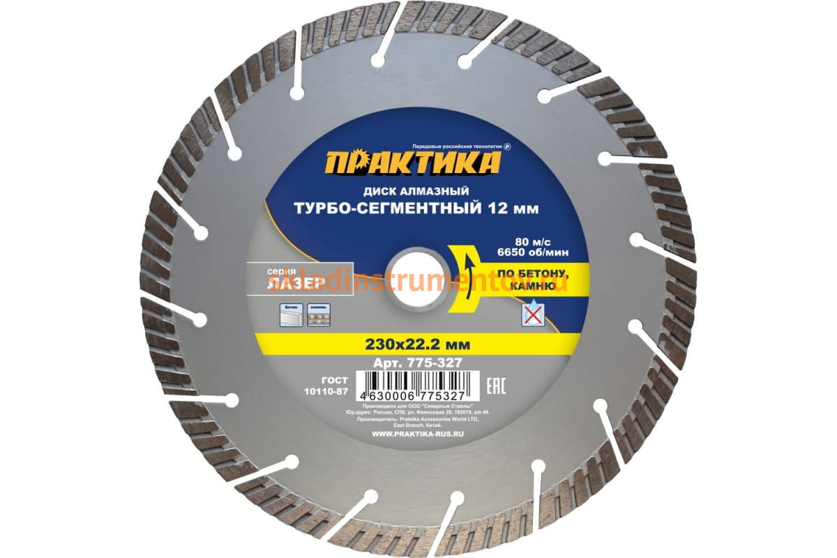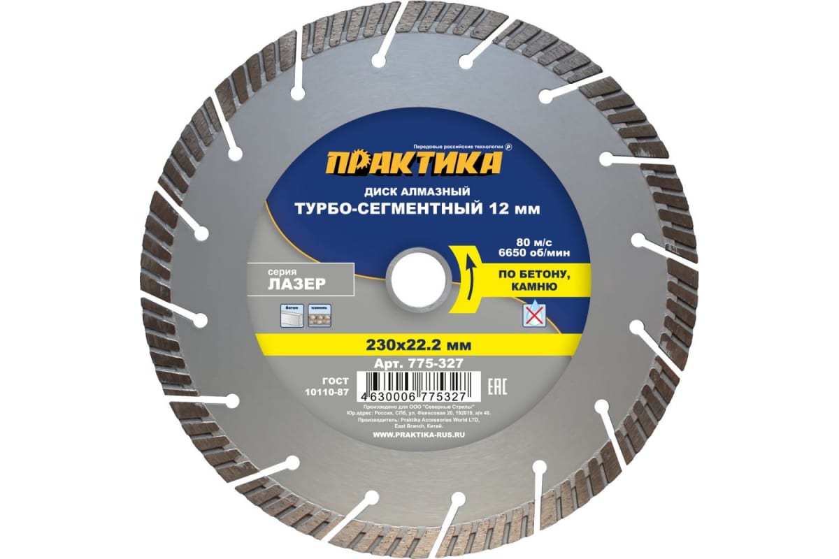 —Диск алмазный сегментный Лазер по бетону (230х22.2 мм) ПРАКТИКА 775-327—