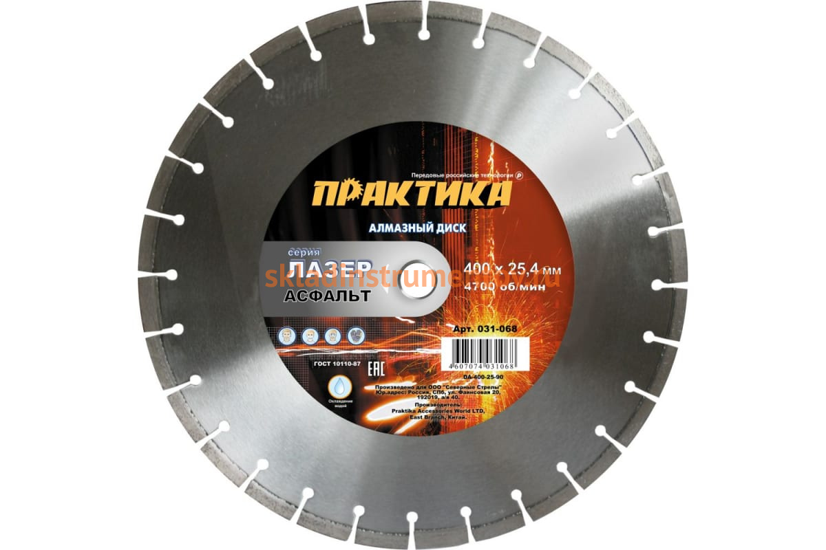 —Диск алмазный сегментный Лазер-90 по асфальту (400х25.4 мм) ПРАКТИКА 031-068—