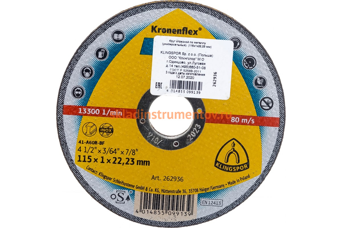 Круг KLINGSPOR 262936 является сменным элементом для угловых шлифовальных машин. Применяется для резки листовой стали, тонкостенных профилей и тонкостенных труб из металла. Твёрдость — средняя. Оснастка имеет высокую производительность и большой ресурс работы.